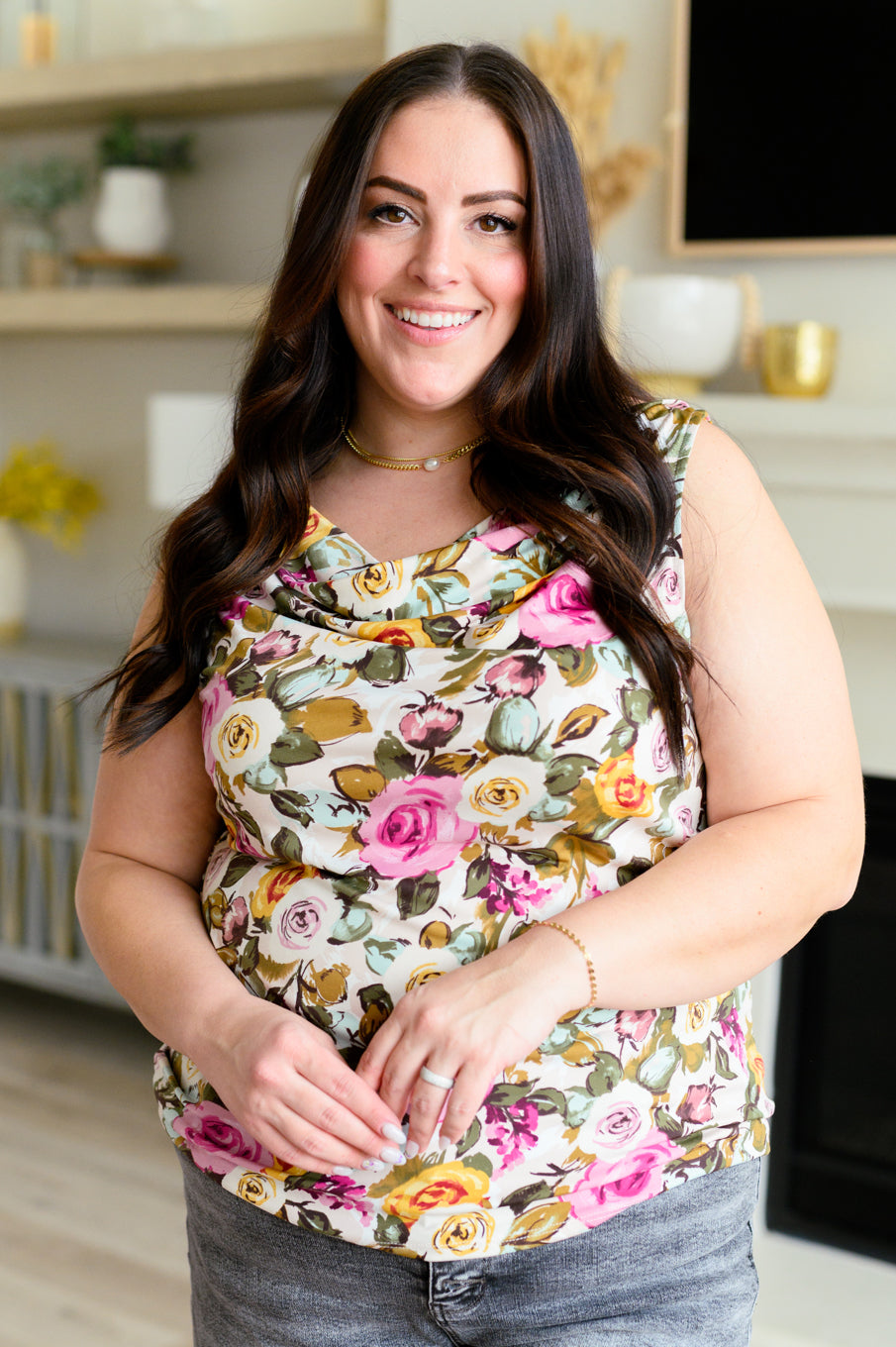 Experience effortless elegance with our floral patterned Call My Name or Walk On By cowl neck top. Made with wrinkle-free bulgari fabric, this top features a draped neckline for a flattering fit. Look stylish and polished without the hassle of ironing!